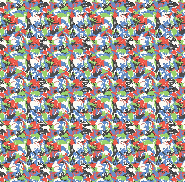様々な機械の絵を茶色と灰色ベースでランダムに着色した柄です。シンセサイザーやスピーカーなど音楽的なイメージと様々な機械が並びつながる工場的なイメージから若い女性だけではなく男性にも好まれる柄を目指しました。